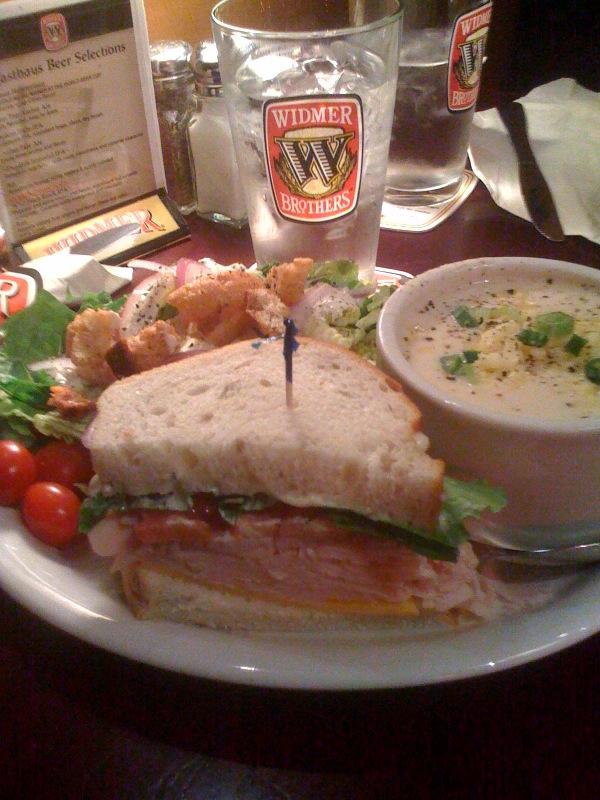 Widmer Brewing today. Had the half & half. Black Forest Ham and Tillamook Cheddar Sandwich with Beer Cheese Soup, and side salad. Delicious. What a cool old building, too. Very hard to go here and not have a pint, but lunches are great. Expect a crowd if you arrive after 11:30am. Good place for the early lunch.