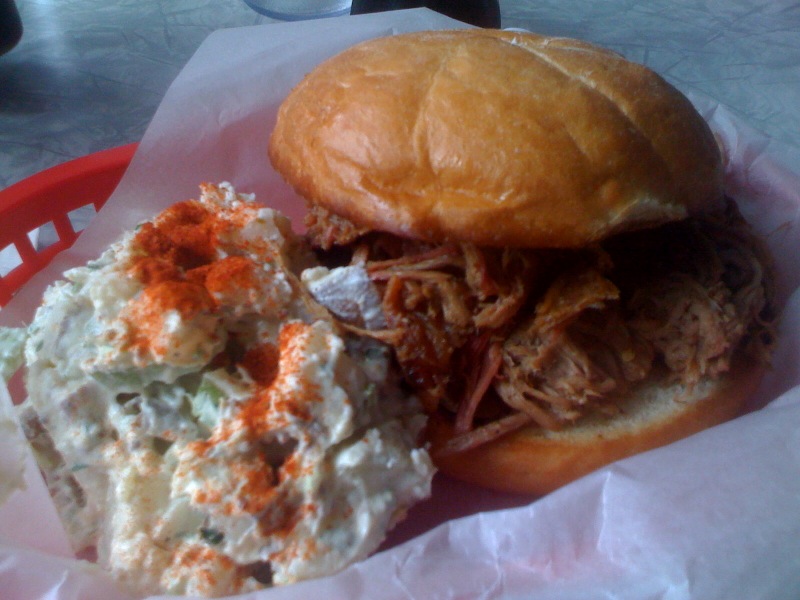 Real good BBQ. Little hole in the wall joint. Great reviews. Very authentic. Sauce was great, pulled pork was awesome. The potato salad was delicious…reminded me of my Mom’s. Even the old time Coke (Sugar, not High Fructose) was cold, sweet, and hit the spot.