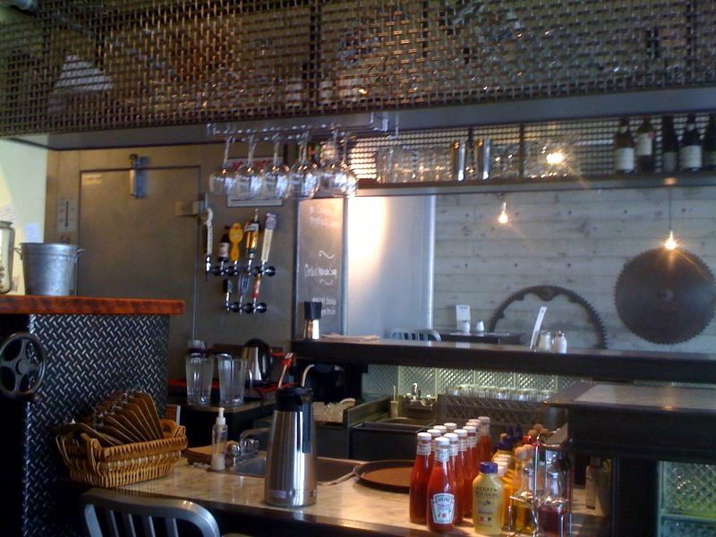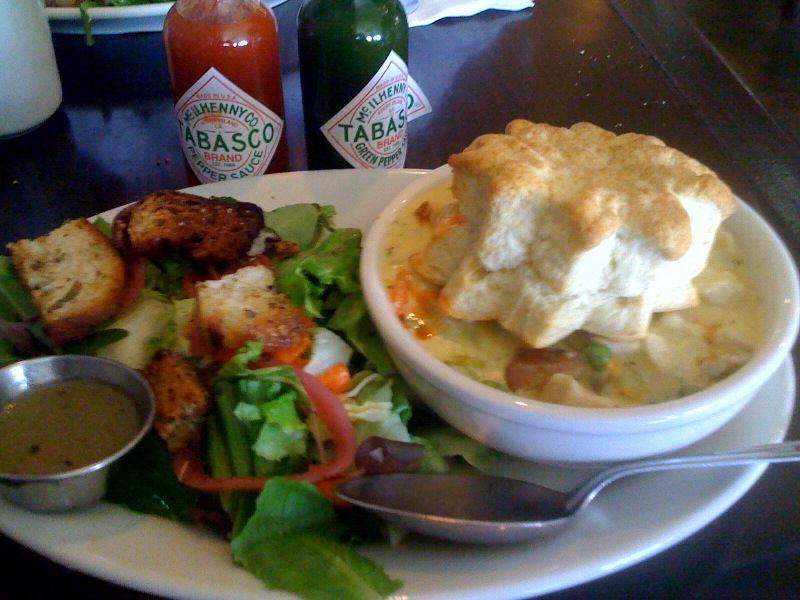 Industrial Cafe & Saloon…on Vaughn. Small room, open and bright. Homestyle food, good portions, and average costs. Had the Chicken Pot Pie which was only okay (Some veggies were undercooked and the big honkin’ bisquit on top is a poor replacement for pie crust). I would come back though…the sandwhiches and burgers looked great. Also, I hear the breakfast here is really good. Friendly staff.