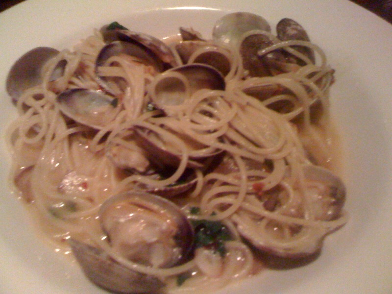 Spouse had the Macedonia salad (northwest berries, aged goat cheese, local greens in white balsamic vinaigrette) which she liked. I had the Natalino (hearts of romaine, escarole, anchovy dressing, parmesan reggiano, focaccia toasts) which I enjoyed early on, but then the dressing became way too thick and heavy. I left some salad on the plate. My entrée was the split of Capellini with Clams (thin string pasta primavera style- with market vegetables, garlic, Sicilian olive oil), and the Gnocchi (handmade potato pillows, cattail creek lamb ragú, garlic chives, sole di sardegna). Spouse had the full plate of Gnocchi. The Capellini was adorned with a generous portion of clams which were delicious, but I am here to tell you the Gnocchi with lamb ragú is the real crowd pleaser. Rich, flavorful, and delicate. We both loved it. Good meal, good drinks, good time. Thank you Pazzo.