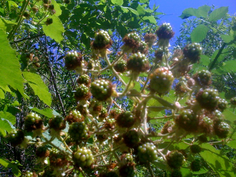 Morning walk with the kiddies, and am noticing huge clusters of blackberries. More like “greenberries” now, but they will be ripe and delicious come fall. Quite possibly my favorite berry, not so much for the berry itself, but all my fond memories of picking them with family, years ago.