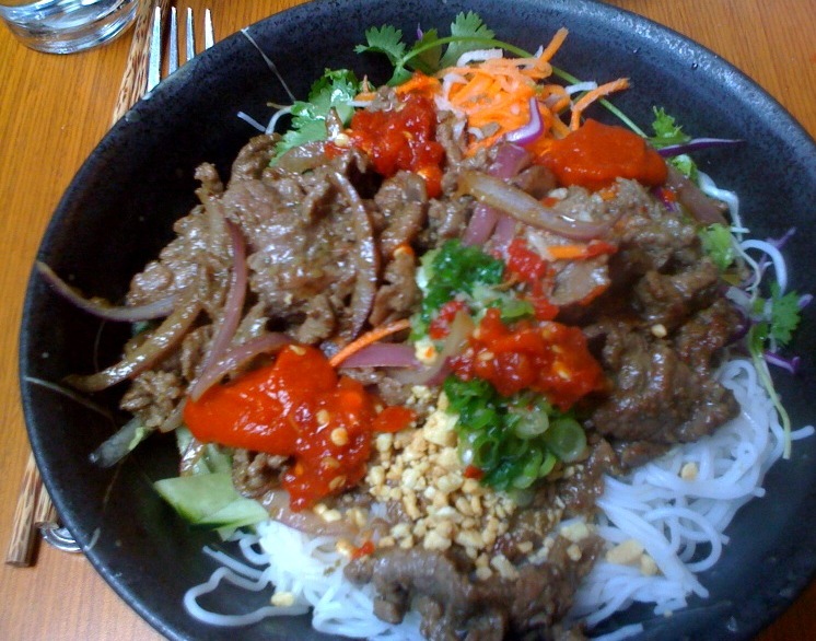 The Beef Stir Fry was on special again at SILK today so we stopped by. It is sooo good! Told our server they should add it to the normal menu, and he agreed. He said everyone is going nuts over it. Just the right sort of summer lunch…light but filling, incredible flavors, texture, the veggies. Of course, I have to add 5 heaping spoonfuls of chili paste to get it at my level of spicy! But that is just me.