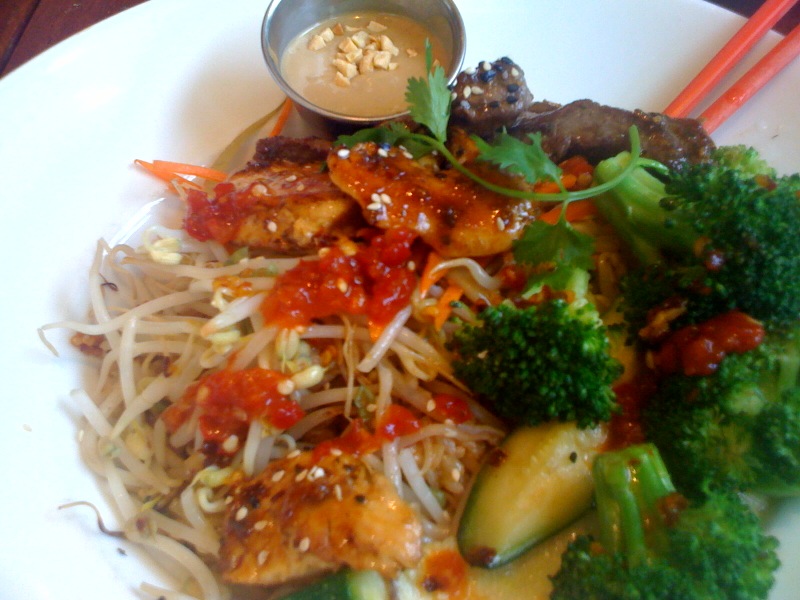 Had lunch at Isabel, in the Pearl. Chef Isabel Cruz serving a “blend of Puerto Rican, Cuban, Mexican, Japanese, and Thai cooking.” Okay. All I know is lunch was delicious, and I am coming back! Enjoyed a dish called Double Happiness. Crisp brown rice and seasonal vegetables with marinated beef and chicken and a side of peanut sauce. Of course had to get a side of chili paste, too. It was really good. The room’s side walls (glass doors) were opened, allowing fresh air and a breeze to enter the dining room. One of my lunch mates said he had been to Isabel several times for breakfast and that it is a must. He stressed that they make a very tasty Bloody Mary. I will have to have one!