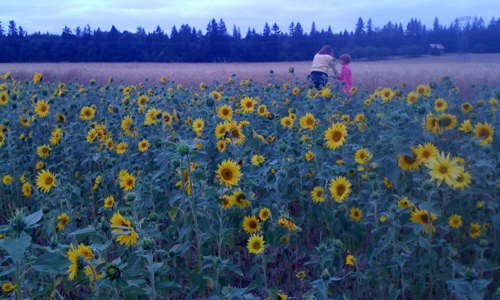 We went out to Grandmas Farm today to get the ingredients, for even more canning, and then traipsed around with the kiddies and found all sorts of treasure and beauty. Old doors, fields of wheat, ladybugs, and so many sunflowers. Beautiful Oregon.