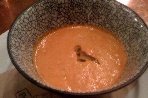 Park Kitchen for lunch today. Real treat. In full view of the kitchen. Started with the roasted red pepper and hazelnut soup, with olives and anchovies. Followed with the flank steak salad, with blue cheese and sherry roasted onions. Delicious!