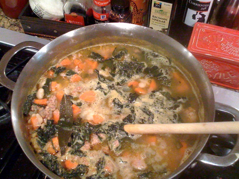 Home Home Cookin’ Posted by Me on November 17, 2010November 17, 2010 Homeade Kale, Sausage, and White Bean Soup with crusty bread and cold white wine!!! Thank you spouse, delicious! Share this: Click to share on Facebook (Opens in new window) Facebook Click to share on X (Opens in new window) X Like Loading... Related