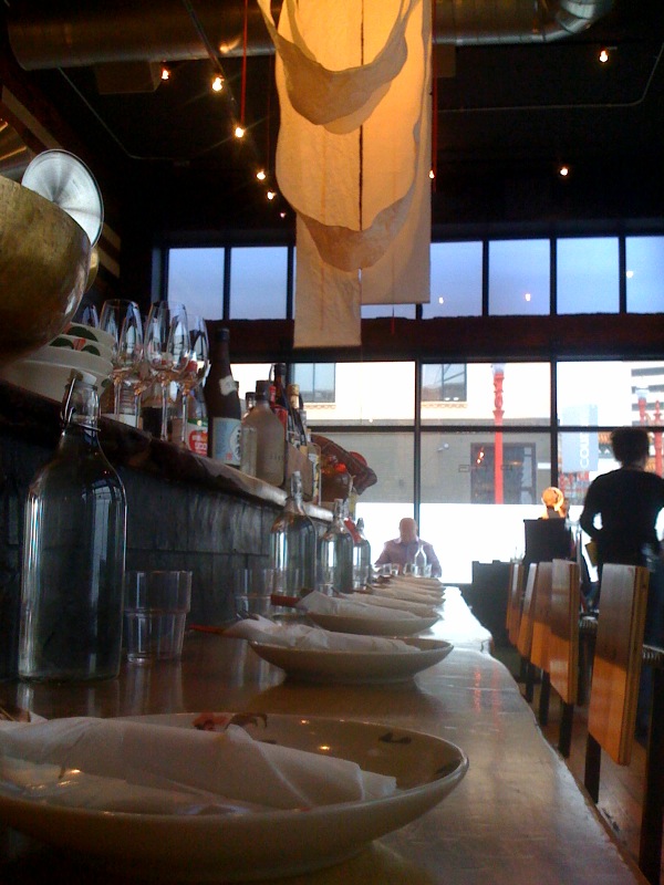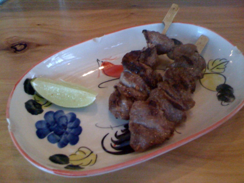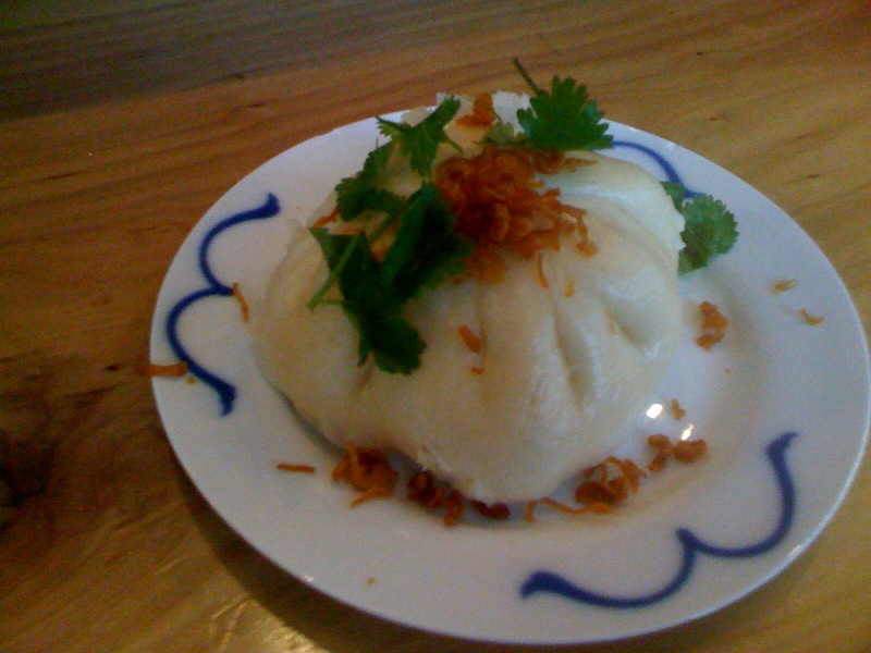 Went to Ping today for lunch. Had the Wild Boar Skewers marinated in Vietnamese style spicy red bean curd and lemongrass. Also the Salapoa, a Thai style steamed bun stuffed with sweet shredded pork and fried shallots. Nice side of Sriracha sauce to get my heat on, and all is good (Damn the rain outside!). Got to tell ya, while the boar was flavorful and well cooked, the bun was crazy-good with flavors and textures one could only describe as rich soul food. I want more bun!!!