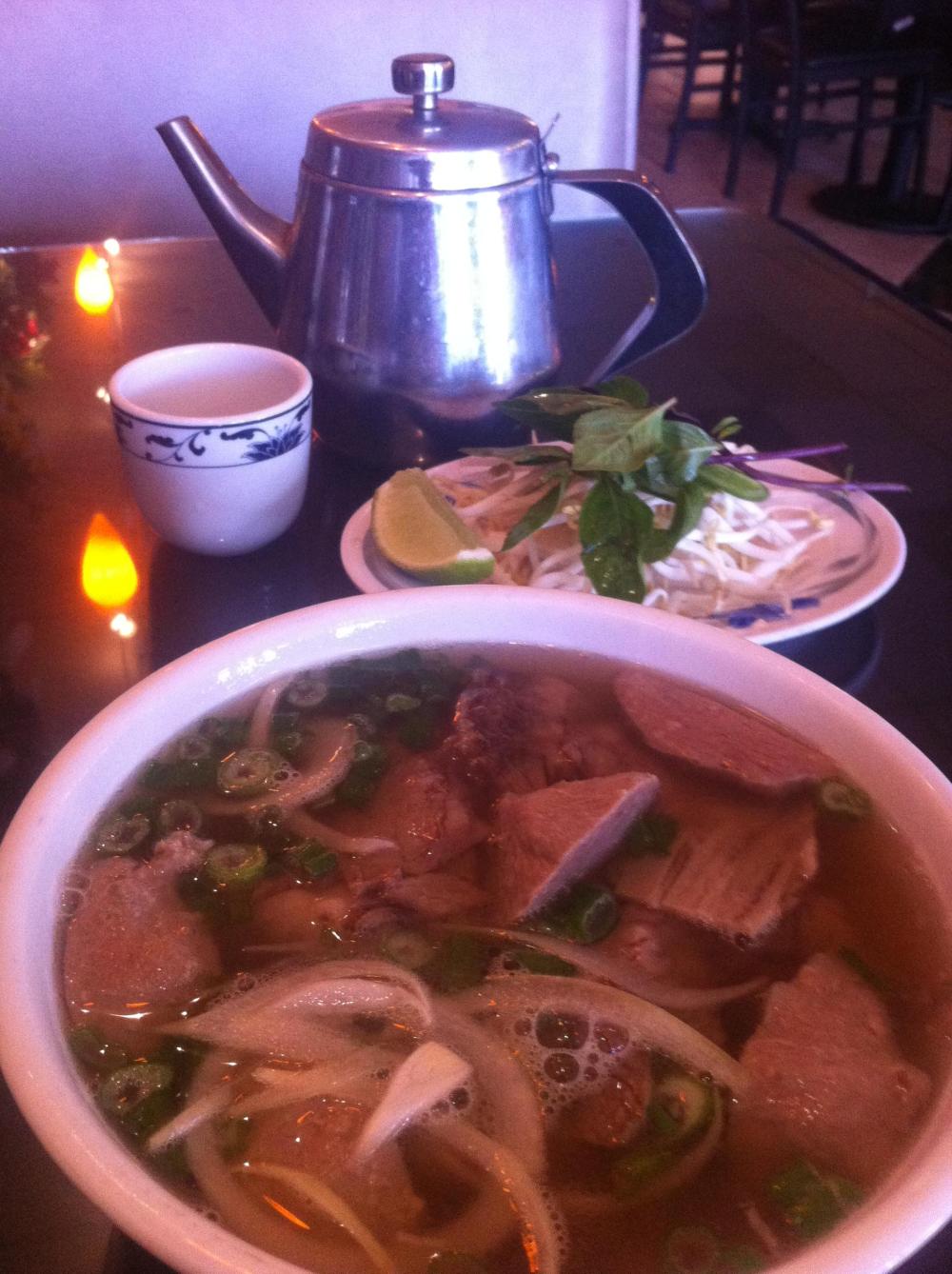 If you have never had pho soup, you are in for a treat. Every good Vietnamese place has it, often several versions. I am a baby and usually go with the beef flank, perhaps with some meatball. But the adventurous will order with all sorts of things such as tendon, trips, sweetbreads, etc. Add lime, jalapeño, bean sprouts, chili sauce, and away you go!