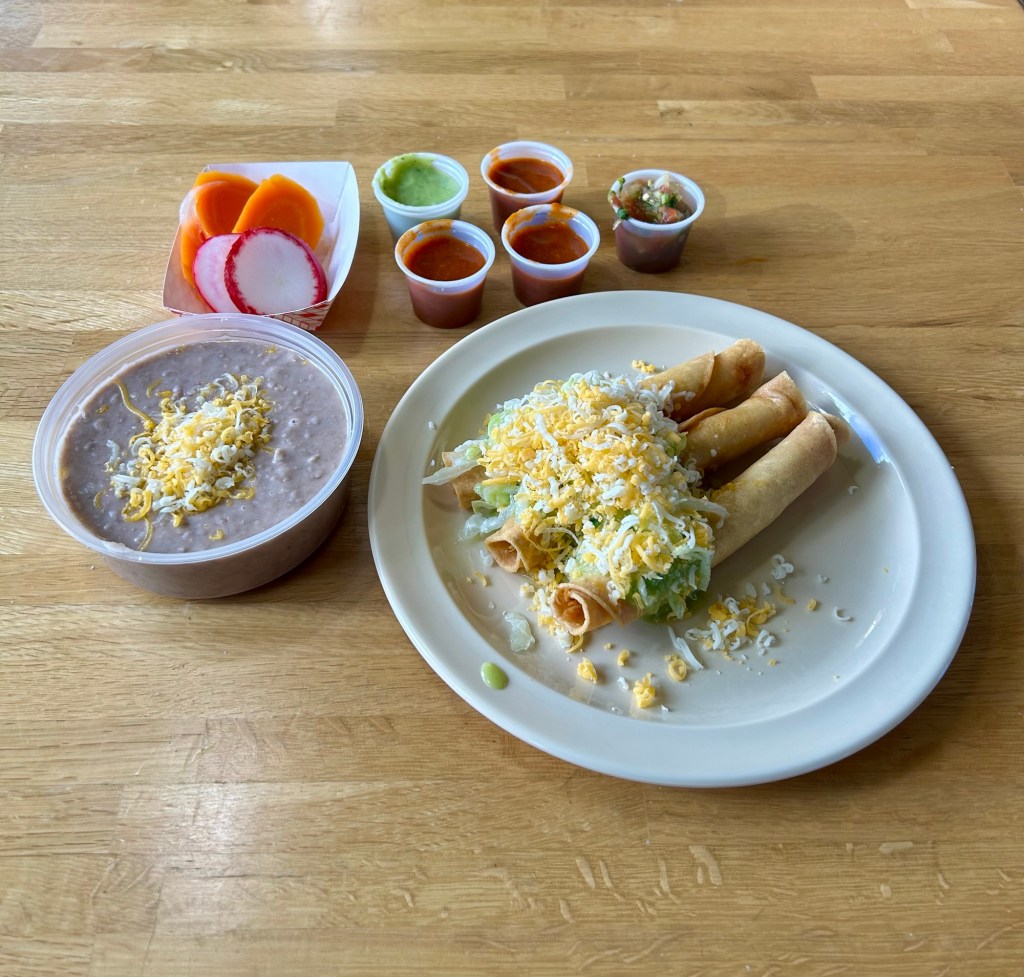 Uncategorized Tualatin Tacos Posted by Me on January 11, 2025 Rolled goodness, and the refried beans quite yummy! Plus hot carrots and radishes? Heck ya. Could be El Cajon, circa 1979!! Share this: Click to share on Facebook (Opens in new window) Facebook Click to share on X (Opens in new window) X Like Loading... Related