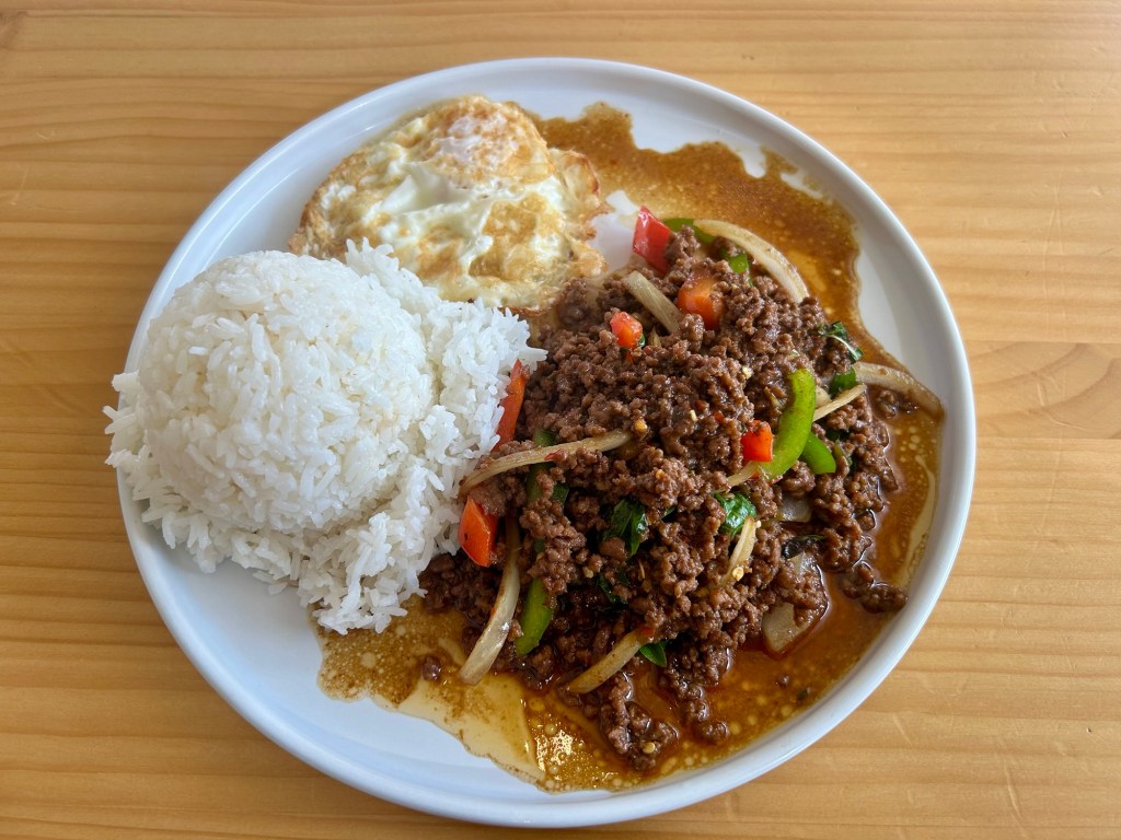 Uncategorized Mo Mo Posted by Me on March 4, 2026 Stir-fried ground beef with basil, onions and bell peppers, served with fried egg and jasmine rice. Oh ya! Share this: Share on Facebook (Opens in new window) Facebook Share on X (Opens in new window) X Like Loading... Related